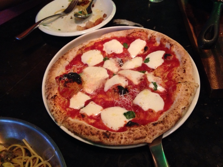 Margherita pizza looks very simple with tomato paste with mozzarella cheese and fresh basil.